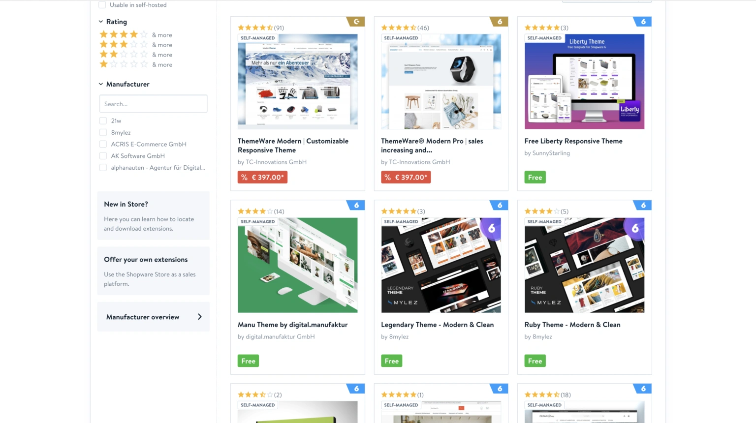 Browse the Shopware theme store