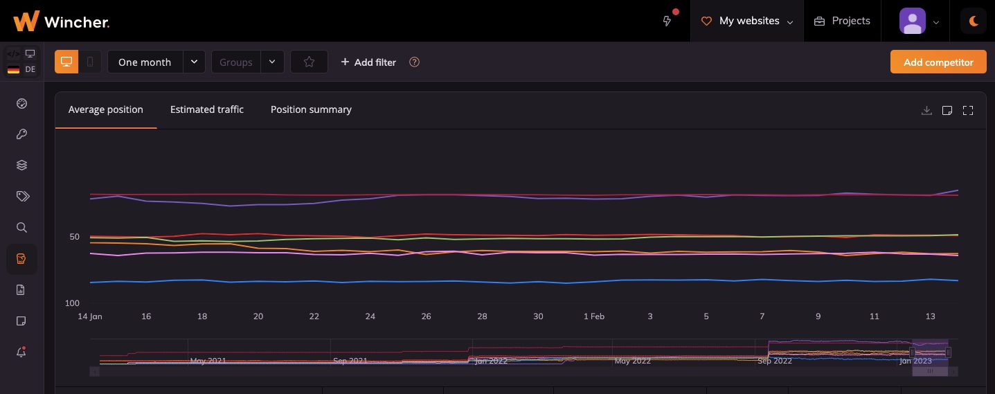 It is important to monitor your competition and see where you can differentiate yourself from them. With Wincher, you can track your competitors' rankings and see where they are more successful than you. Use this information to adjust your SEO strategy and optimize your website.