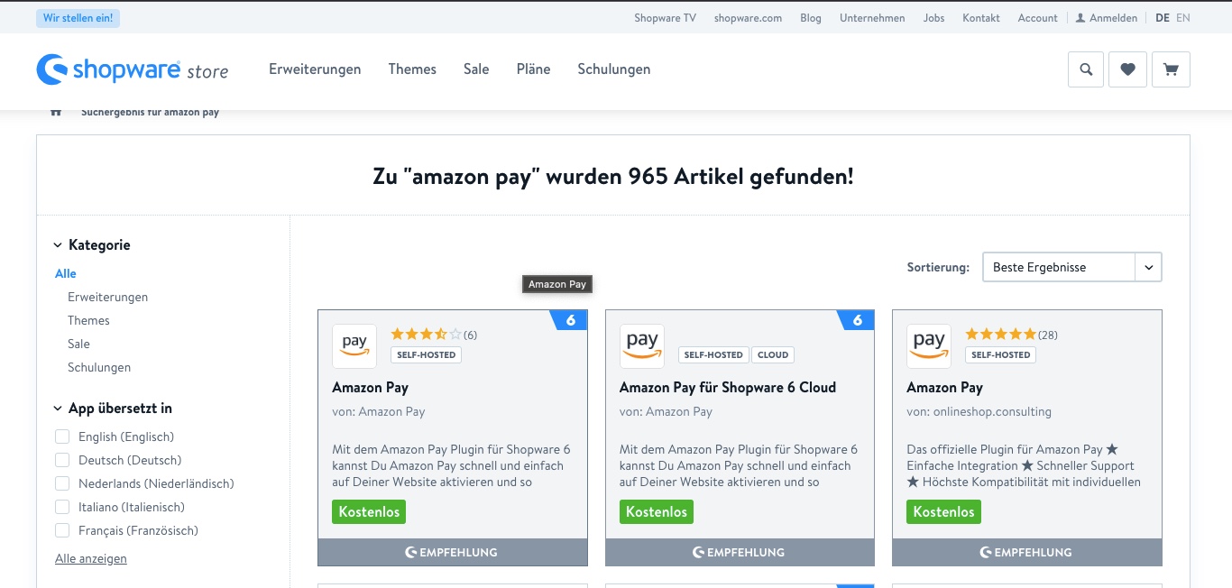 Amazon Pay simplifies shopping in Shopware 6 and provides a fast and secure payment option for buyers. With Amazon Pay, customers can use their familiar and trusted Amazon login and payment information to pay quickly and securely. Since Amazon Pay is compatible with almost all Shopware 6 themes, you can offer your customers a unique shopping experience. With Amazon Pay, shoppers can pay easily, quickly and securely. Customers no longer need to provide personal information such as credit card numbers and addresses, which increases buyer satisfaction. In addition, shoppers can choose multiple payment options, such as purchase on invoice or debit, which increases your website's conversion rate. Moreover, Amazon Pay offers 24/7 buyer protection, which provides security and trust to buyers. So, with Amazon Pay, you can not only improve your customers' shopping experience, but also increase your sales. The writing style is compelling and informative, which encourages readers to take a closer look. So, if you run a Shopware 6 website and are looking for an easy way to optimize payment processing and increase customer satisfaction, you should definitely consider Amazon Pay.