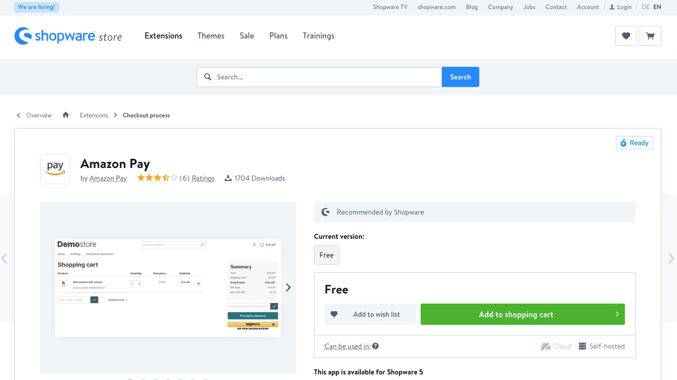 This Amazon Pay plugin is only for Shopware 5 Self-hosted Versions
