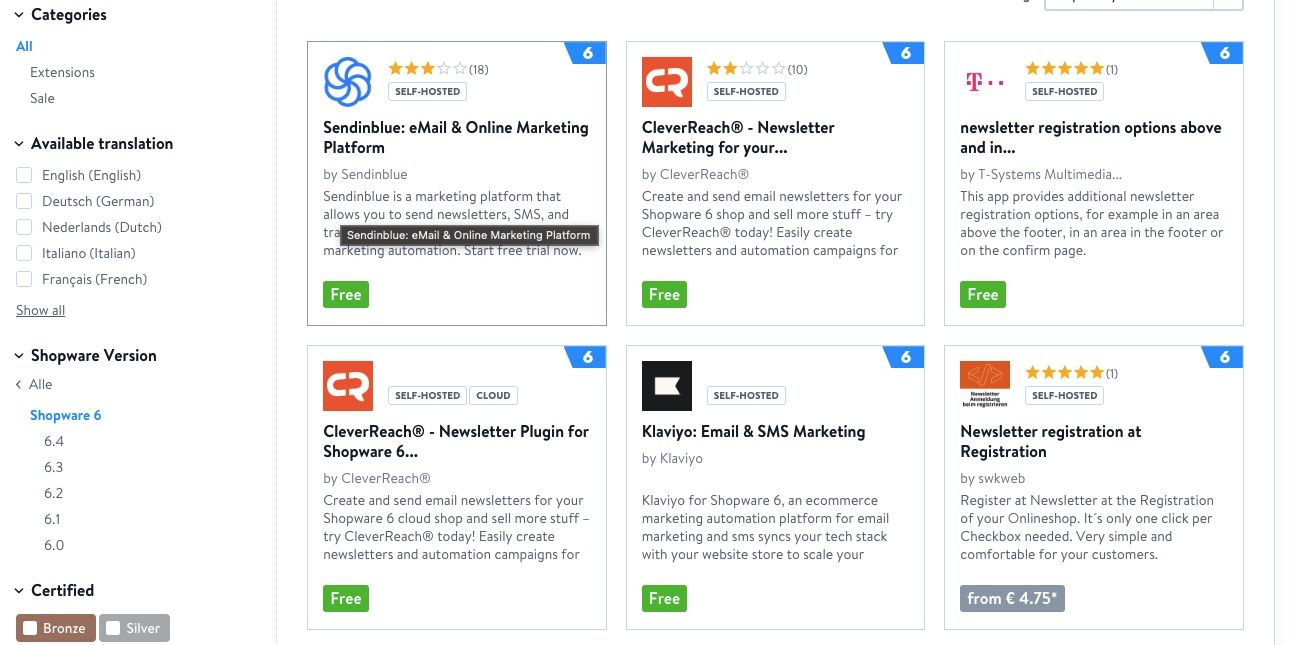 Some newsletter extensions for Shopware 6 sorted by popularity.